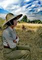 照片中,蒋雯丽头戴稻草帽,穿着极有年代感的女兵服装,留着齐耳短发,置身于一片金黄的麦田中,时而眺望远方,变身麦田里的守望者,宛如一幅油画,极富意境。...