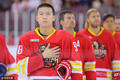 视觉中国2016年09月06日讯 北京,9月5日,英达儿子英如镝现身16/17KHL大陆冰球联赛,手捂胸膛眼神坚定英姿飒爽。英如镝赛场拼搏。英如镝在冰球赛场上。英如镝。冰球赛场战...
