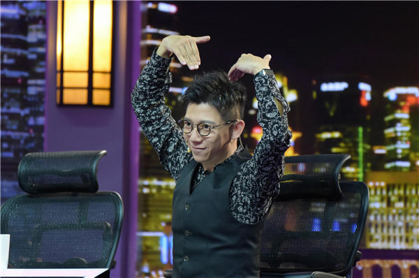 “唱作大咖”陈羽凡现场罕见卖萌,手比爱心肯定美少女精彩表现。