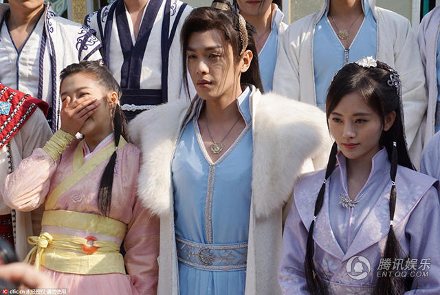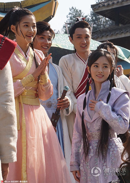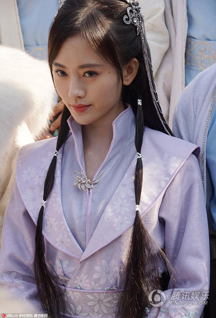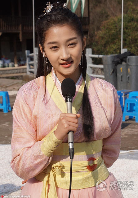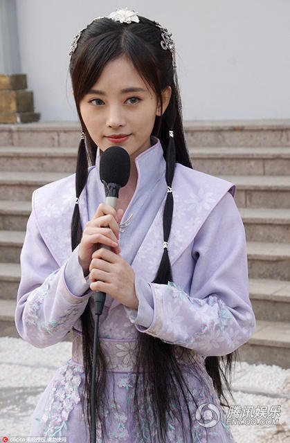 《九州天空城》开放探班时,穿着戏服的关晓彤、鞠婧祎。