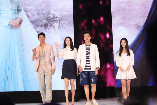 众位主创,左起:关晓彤、张若昀、鞠婧祎、刘畅,这是一场大长腿的决战。