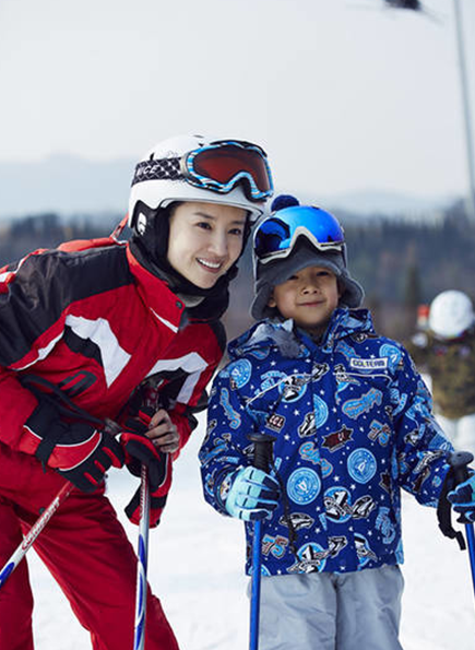 董洁与儿子滑雪照曝光 温馨互动满屏都是爱