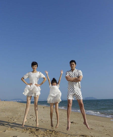 陆毅,大长腿,长到令人发指,这张全家大长腿图,更是让粉丝羡慕不已。