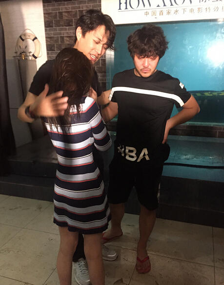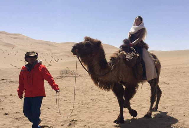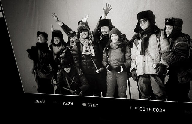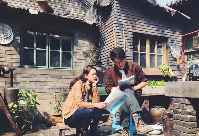 扮演Shirley杨的她,和扮演胡八一的靳东在片场。