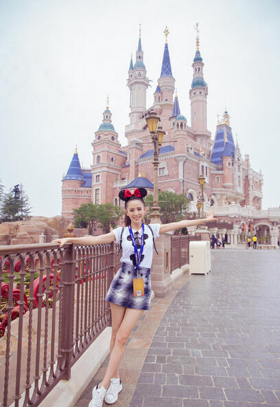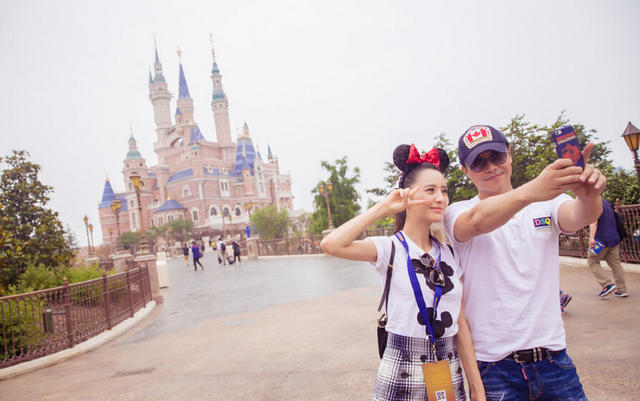 组图:佟丽娅携夫游迪士尼 人妻辣妈秒变美少女