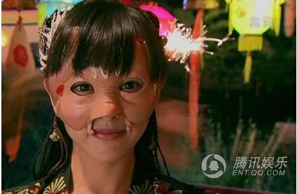 唐嫣---紫萱。这个猪八戒面具是我们经常看到,但是未必会带的,尽管是《仙剑奇侠传》里的紫萱,戴起来也依然不是那么好看~