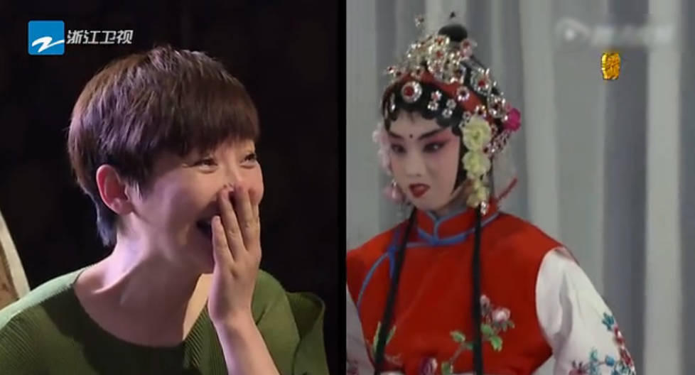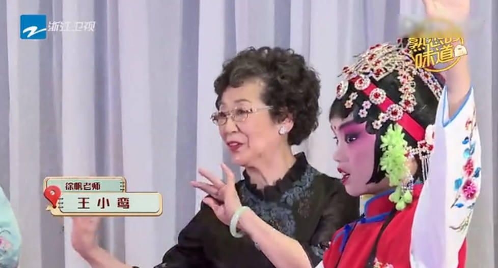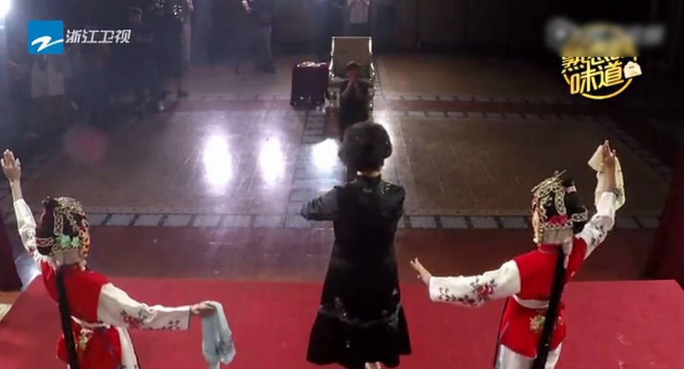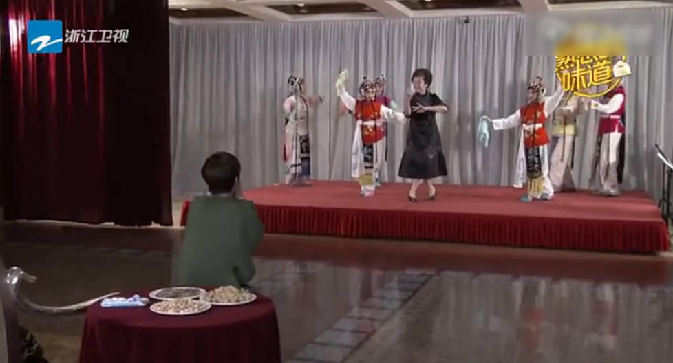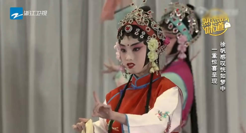 幕布被拉开,几位青衣和女儿朵儿出现,演了一出徐帆小时候也唱过的《春香闹学》。