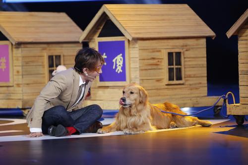 3.自己家中养有小狗的刘谦,是个小动物爱好者。当可爱的狗狗们被请上舞台时,刘谦好不掩饰的表达了他对狗狗们的喜爱。在互动环节,更是主动要求上台验证,与狗狗来了一场亲密接触。