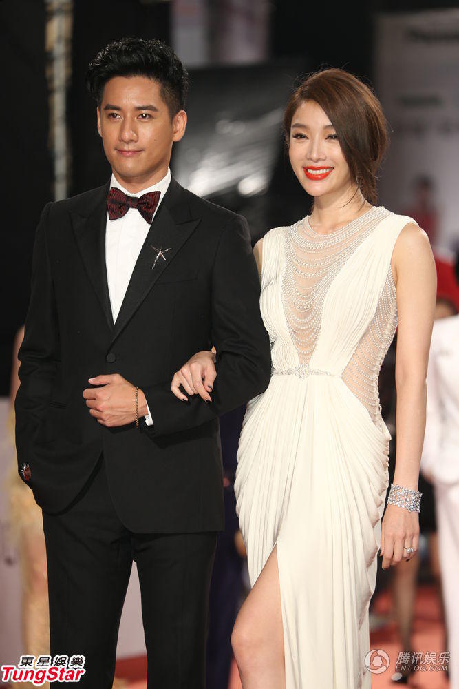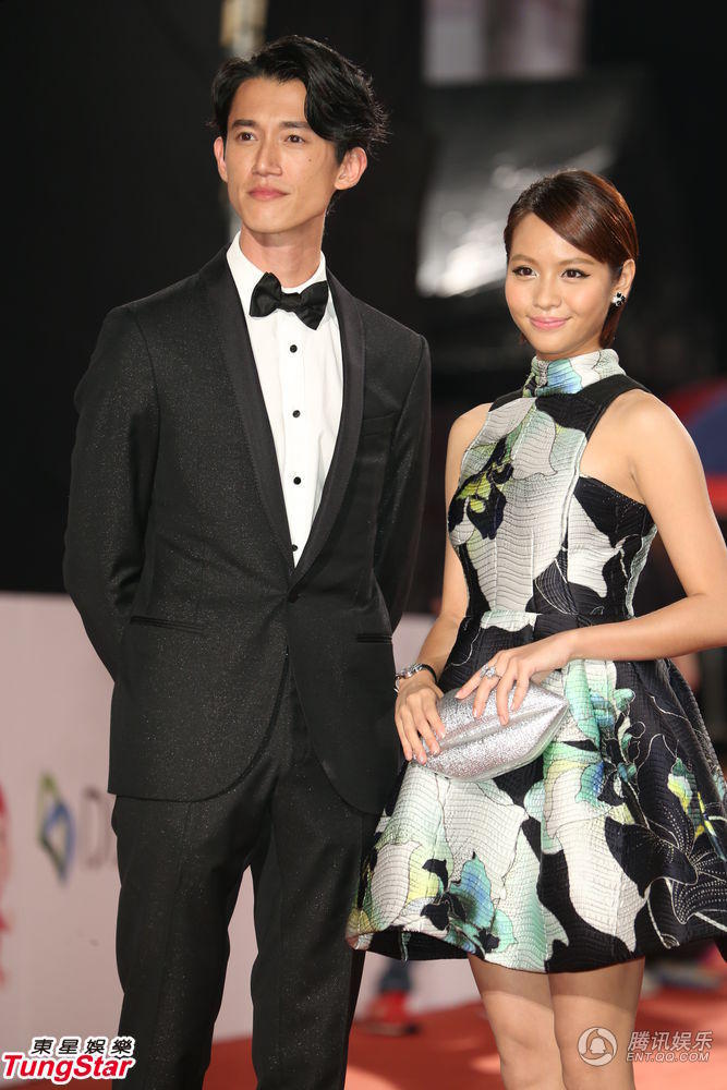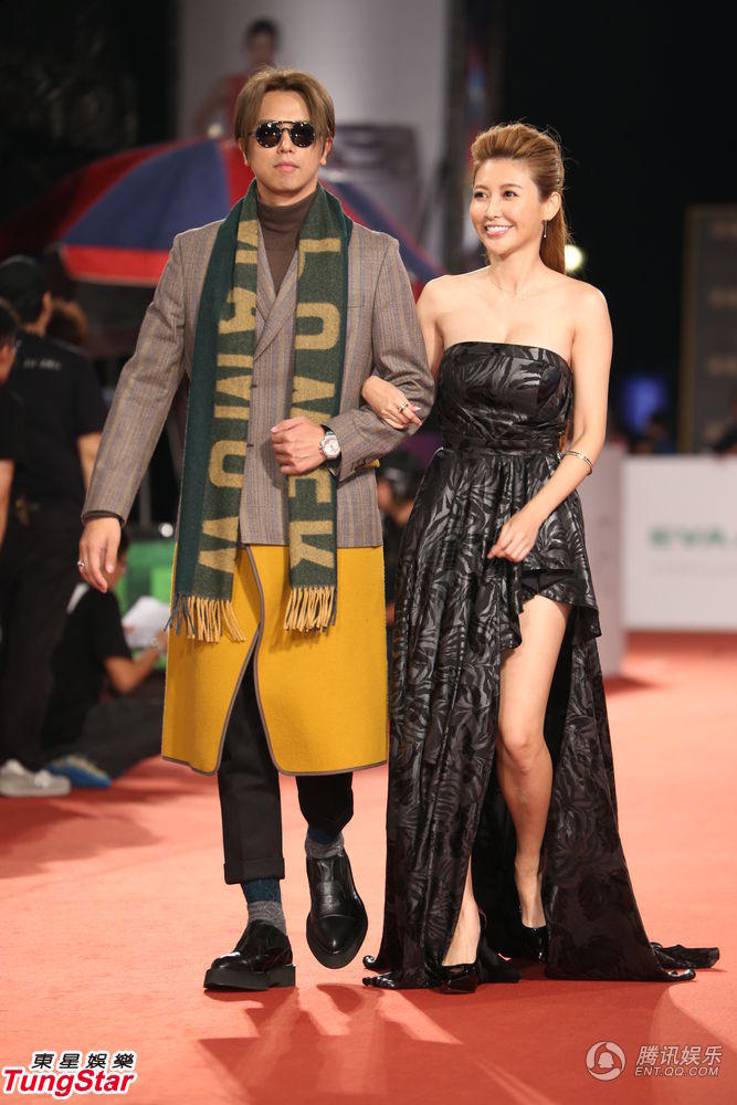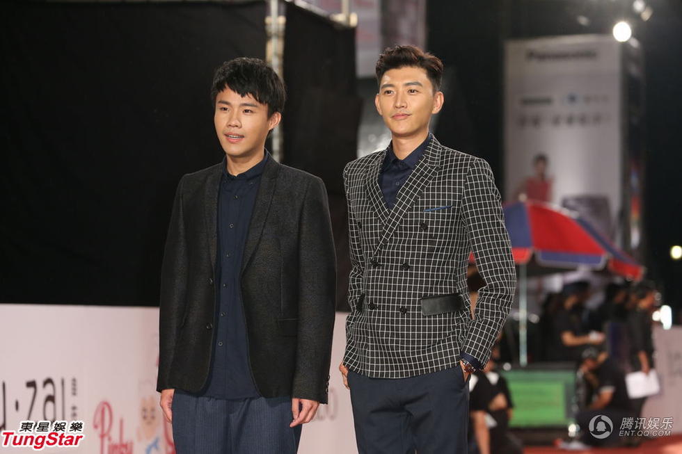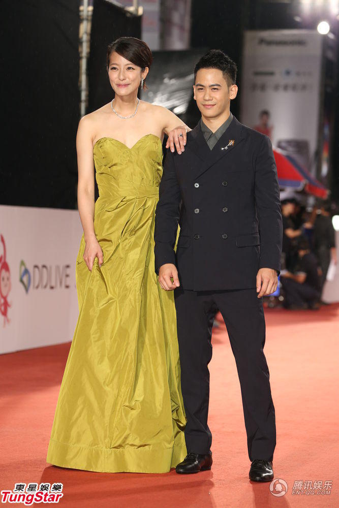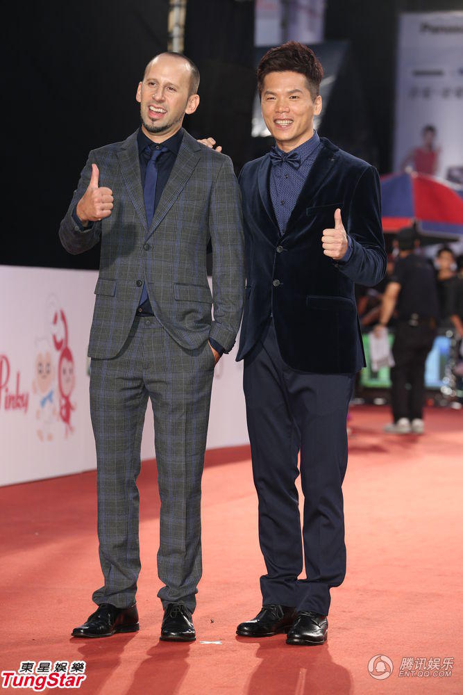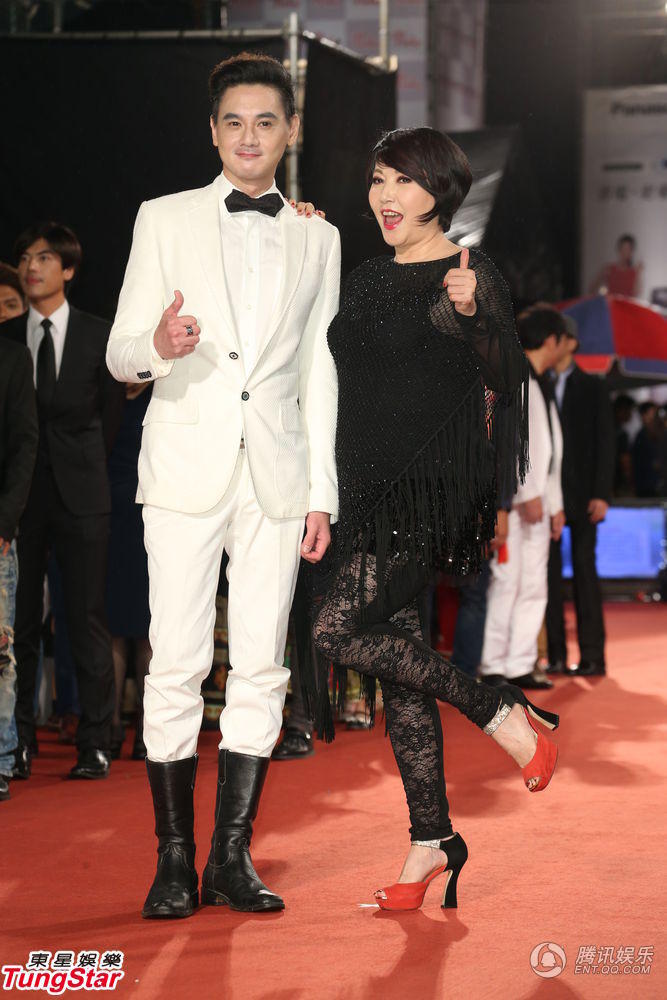 (图文/东星) 第50届金钟奖星光大道隆重登场,众星在“金钟50”的红毯上争奇斗艳。图为潘玮柏与杨丞琳。