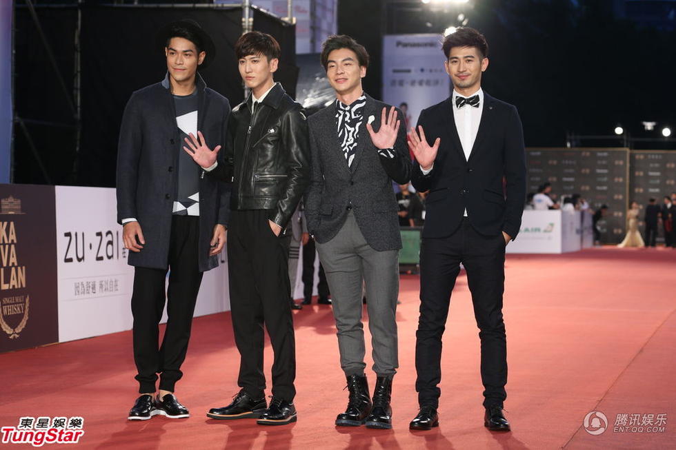 (图文/东星) 第50届金钟奖星光大道隆重登场,众星在“金钟50”的红毯上争奇斗艳。图为动力火车。