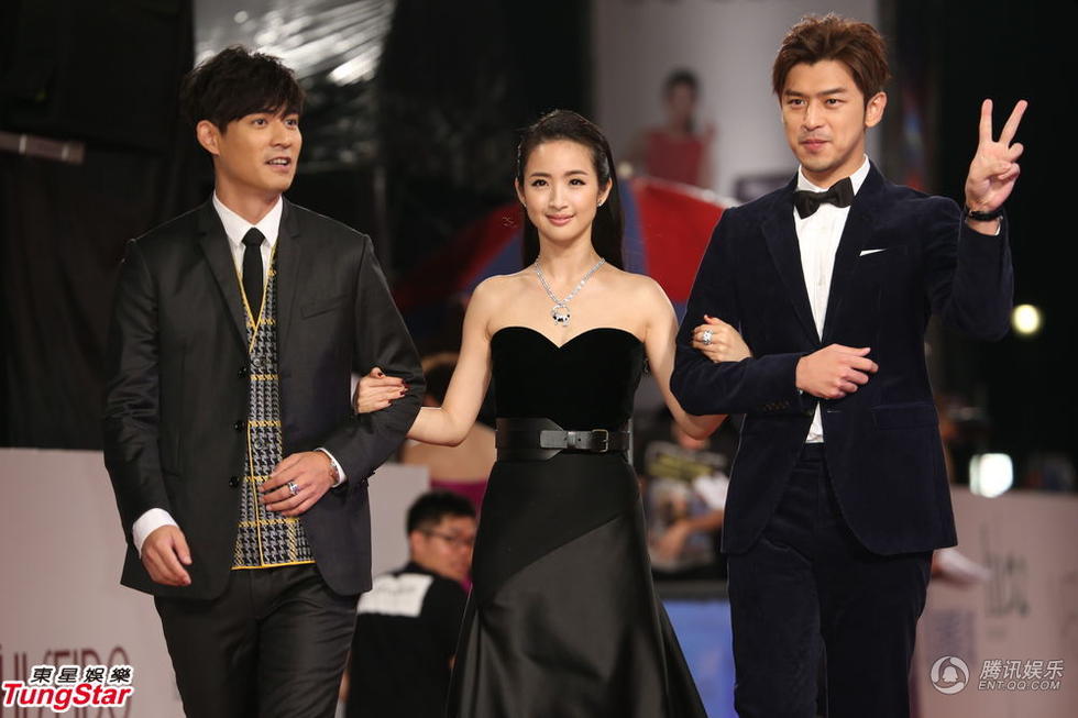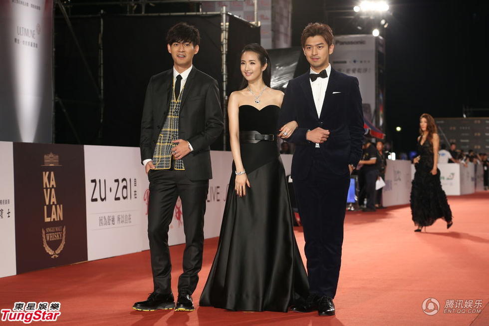 (图文/东星) 第50届金钟奖星光大道隆重登场,众星在“金钟50”的红毯上争奇斗艳。图为周渝民、林依晨、陈柏霖。