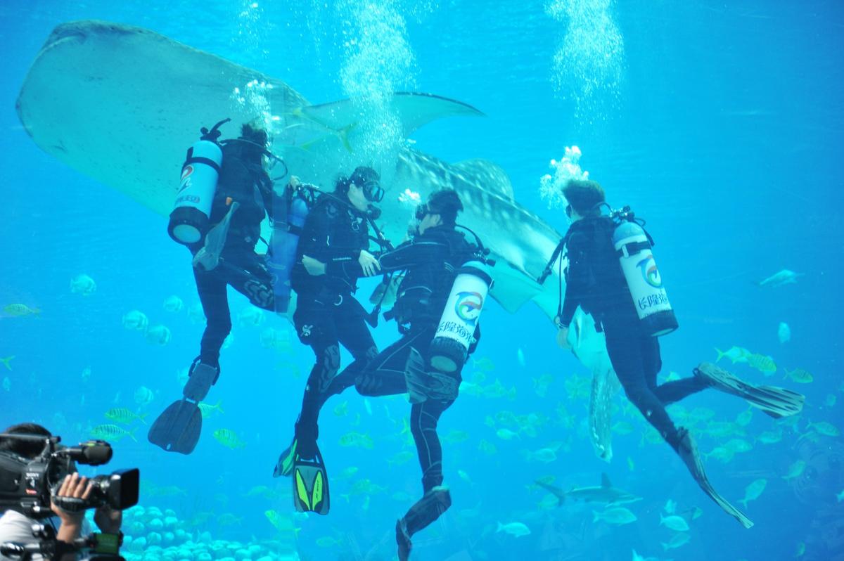 挑盟家族化身海洋动物管理员 与鲨亲密共舞