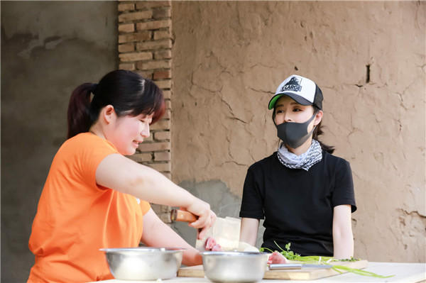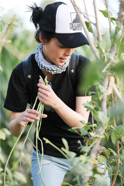孙坚逐渐获得了庄师傅的信任,庄师傅带着孙坚一行人来到自己的家,为了给张静初制造学做臊子面的机会,孙坚把庄师傅骗出了家门。张静初学完了臊子面的做法,看着眼前热腾腾的臊子面暴露了自己的吃货属性,明目张胆的在厨房里端着臊子面大快朵颐,吃的正开心,庄师傅和孙坚回来了,张静初忙不迭的丢下碗筷在工作人员的掩护下躲进了人群中。经过几次折腾,张静初十分担心“我感觉庄师傅就快要发现我了,这个节目可能要录不下去了”。图为张静初亲自下地摘豆角