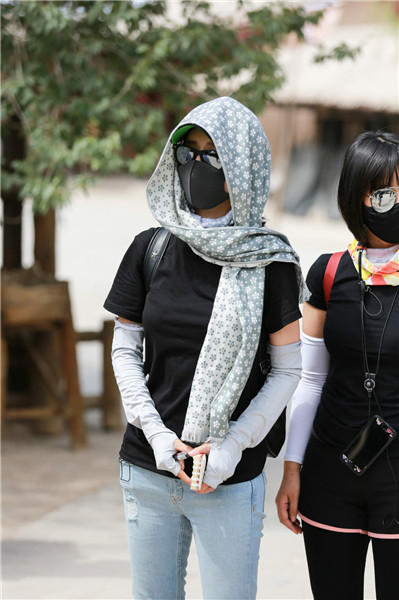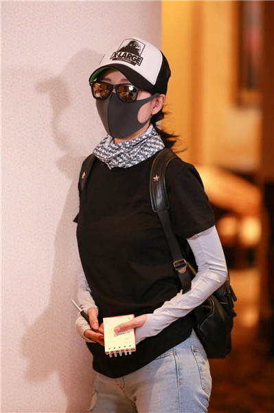 这是张静初在拍完电影之后第一次回到敦煌,为了不被庄师傅发现,张静初委托孙坚扮成浙江卫视另外一档节目负责人的身份,联系庄师傅,并邀请庄师傅成为剧组的司机,带领孙坚等人游览敦煌。而张静初则换上工作人员的衣服,戴上帽子,口罩和墨镜混迹在工作人员中,尽管已经非常的小心,可还是数次差点被庄师傅发现。图为张静初乔装与人聊天