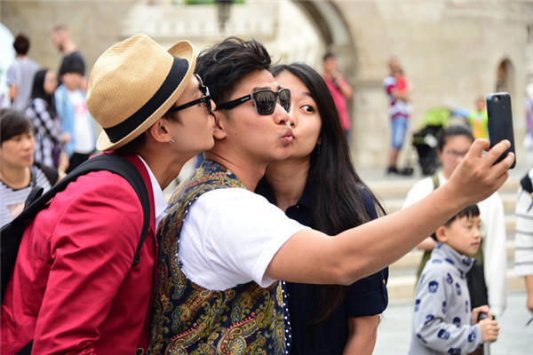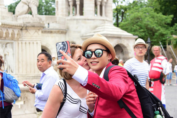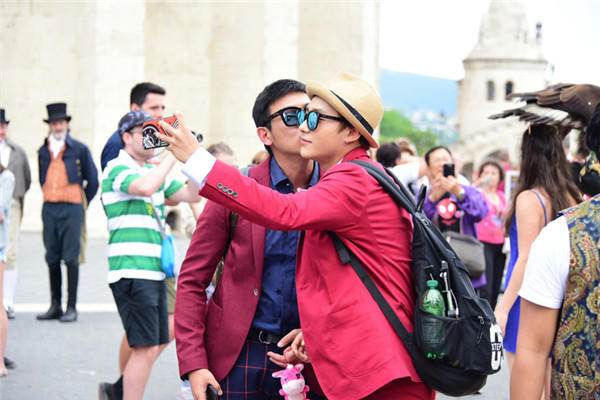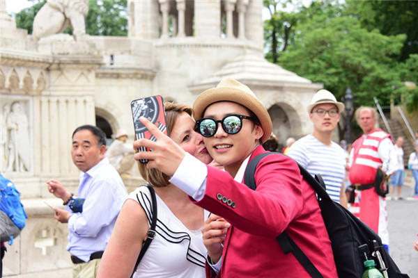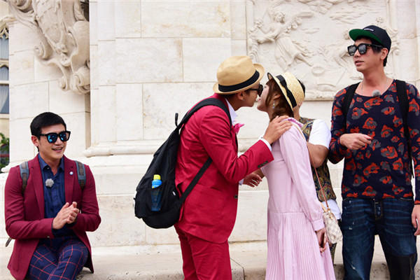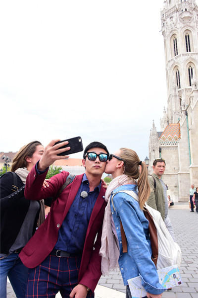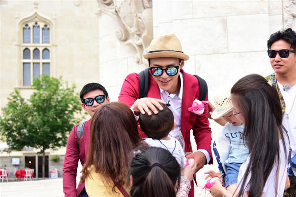《花样男团》今晚的节目中,男团与节目组达成共识,自主选择了下一个“游乐场”——渔人堡。面对“向陌生人索吻”的任务,男团纷纷出招:郭德纲当场拽了个小萌娃当翻译,一老一小街拍起来强势吸睛;欧弟、金圣柱街头比“舞”招青睐,魅力大放送秒杀无数少女心;陆毅采取“刷脸”战术,绅士风度吸引了不少国外美少女;一向作为男团中“搭讪担当”的信也是战绩辉煌,纯熟的搭讪技巧令郭德纲自叹不如:“还是信哥哥业务熟练!”。图为外国美女献吻,颜帝表面淡定内心窃喜