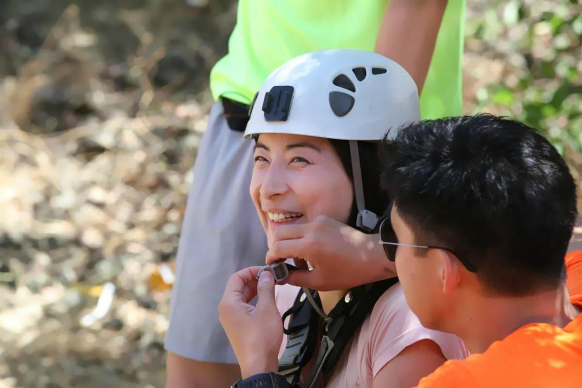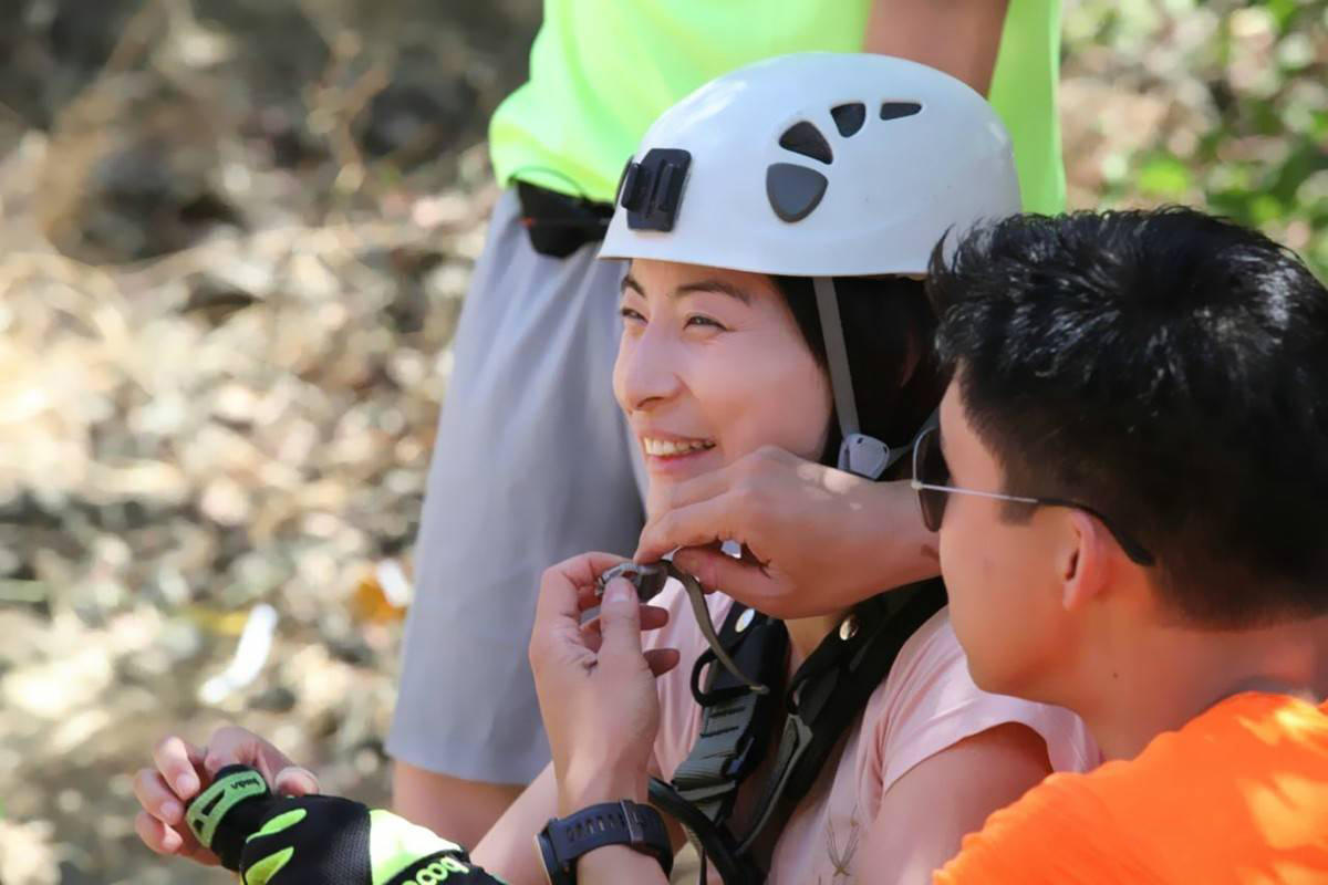 轮到老婆上阵,霍启刚立马为她戴好安全帽,郭晶晶一脸掩不住的笑意。
