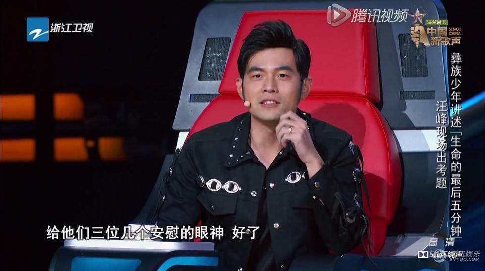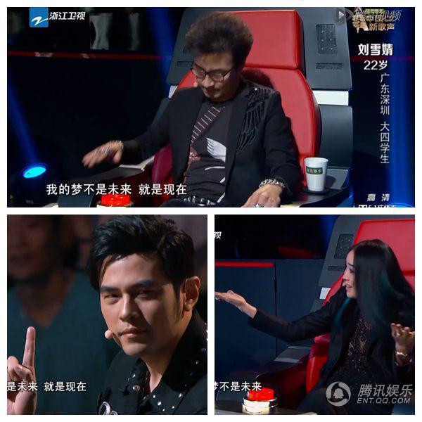 汪峰很快就冲下来了,杰伦、那英也在最后时刻拍下战车,三位导师开始抢人大战。