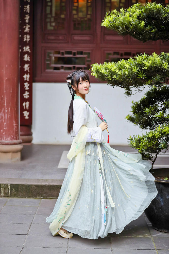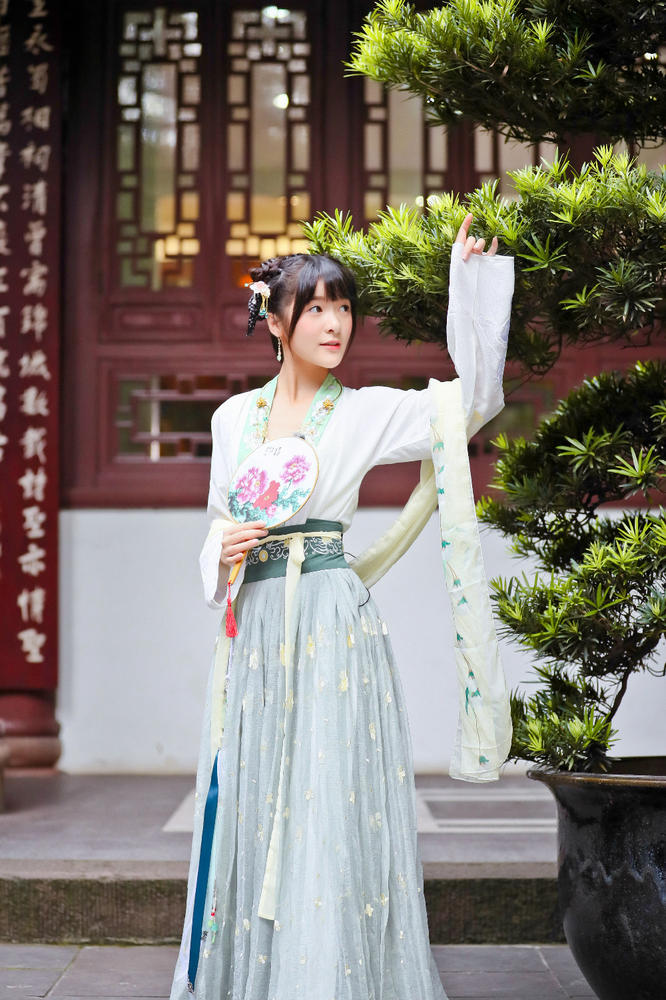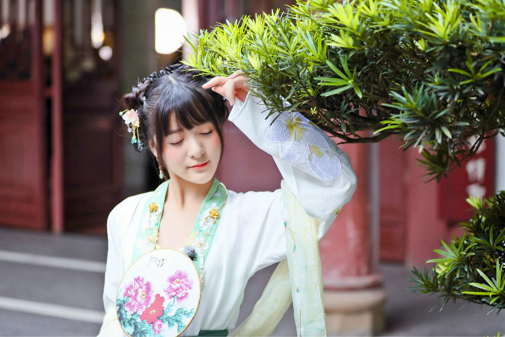 作为一个十足的“汉服控”,徐娇在《我们来了》节目中的每次出场服装都古风气息浓厚,此次成都之行更是放大招,直接穿上绝美汉服登场,秒杀无数菲林。娇娇将头发左右绾成两个发髻,犹如邻家小妹一般甜美可人,搭配十分有特色的银饰发簪,像古典画中人一样施施然地出场。淡雅的汉服裙摆在树下随风扬起,优美得令人无法移开目光。
