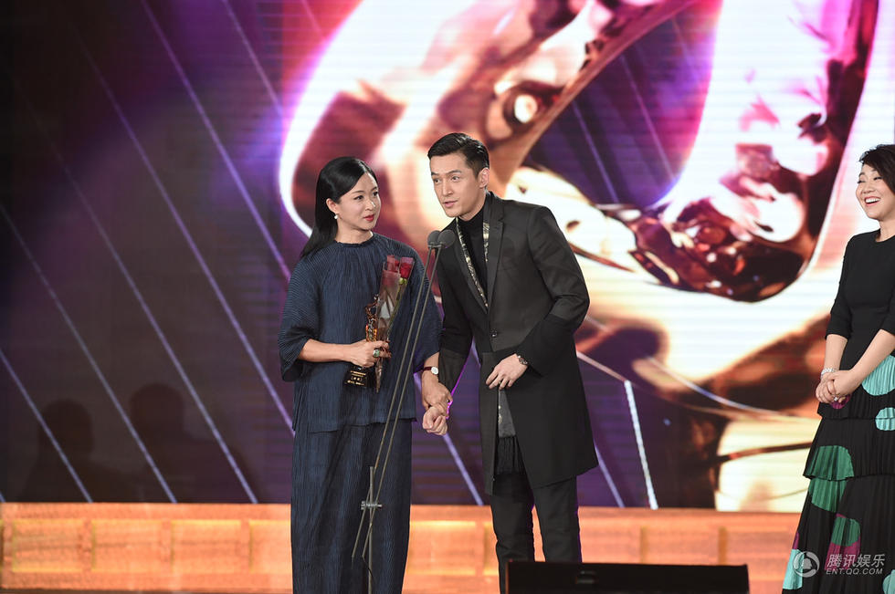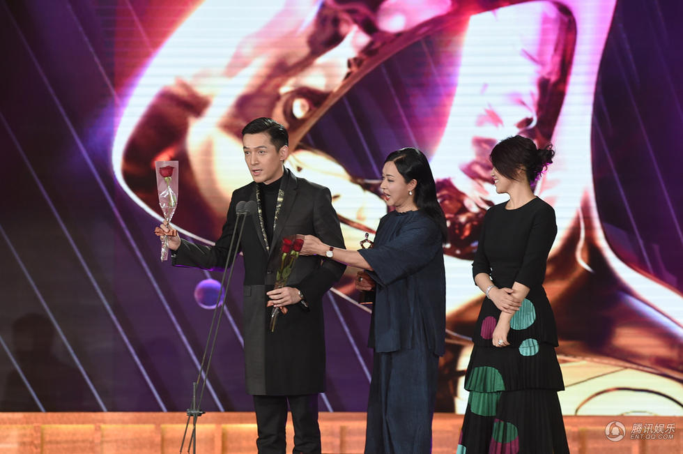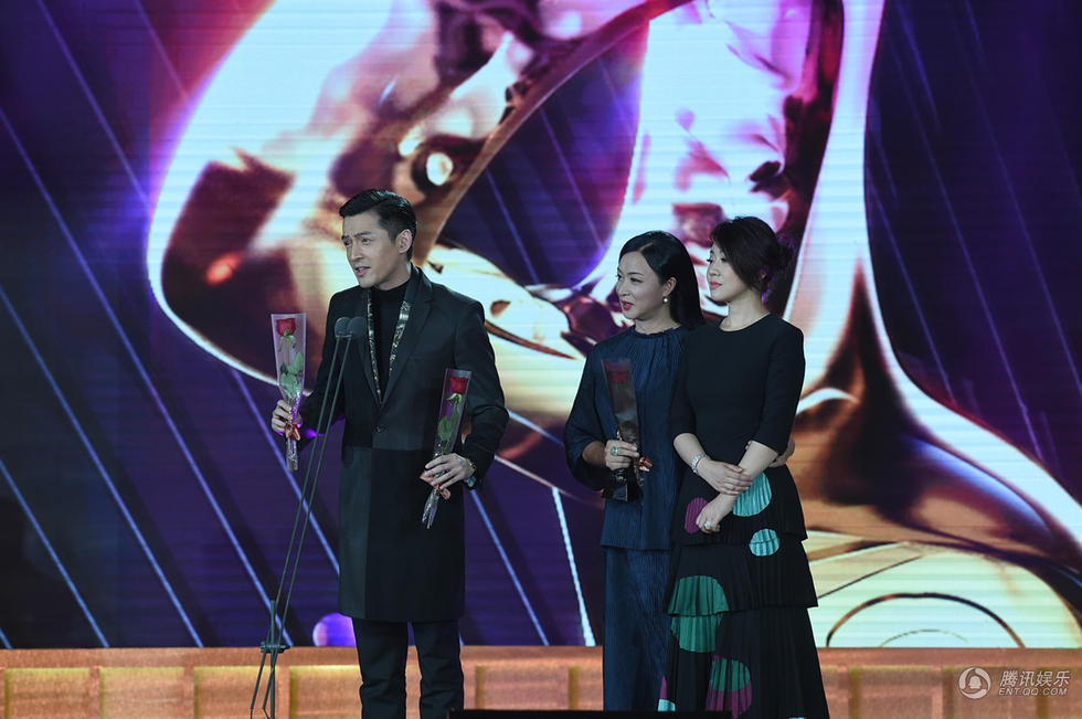 胡歌获得年度品质表演大奖,颁奖嘉宾金星让他把三朵玫瑰送给生命中最重要的三个女人。