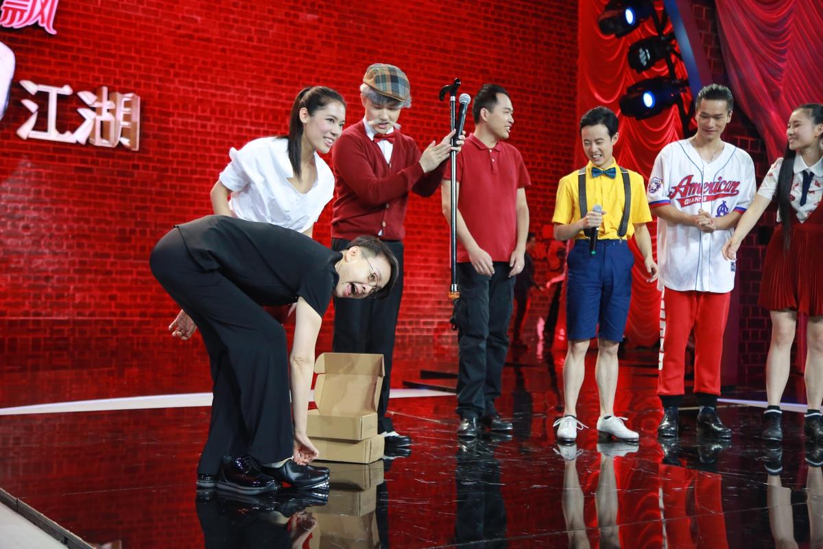 被“踢踏舞”燃爆的《笑傲江湖》现场,宋丹丹也忍不住秀了一把“舞后”风姿。在被“蟑螂”惊吓到的“啊啊啊”尖叫声中,宋丹丹跟随着“踢踏舞”老师,以“光速”学会了名为踢踏舞的脚步技巧,并且直接带领舞团,轻快地踩着“哒哒”节拍,完成了完整的一首妙趣横生的“不怕蟑螂”踢踏舞。