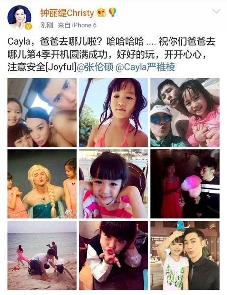 钟丽缇微博写到:Cayla,爸爸去哪儿啦?哈哈哈哈....祝你们爸爸去哪儿第4季开机圆满成功,好好的玩,开开心心,注意安全。