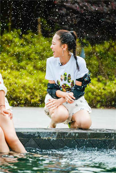 陈乔恩赏荷花爆气球 变身“元气怪力”少女