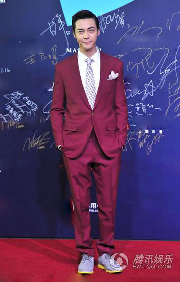 陈伟霆这套正装的裤子口袋偏下,但是胳膊长就是任性,陈伟霆插兜毫不费力。