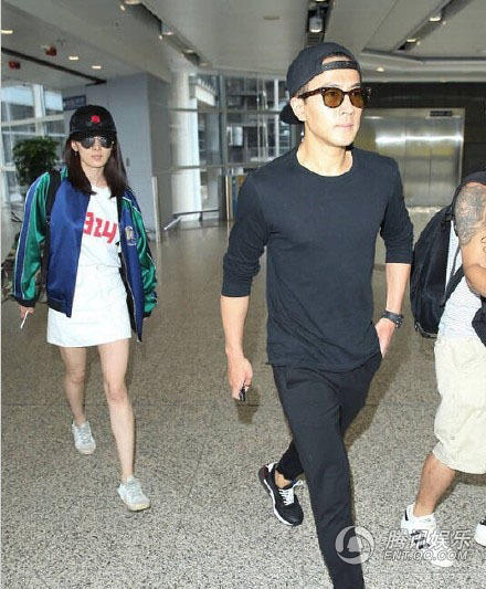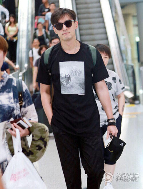 胡歌的机场照插兜很帅气,也可以看出手臂微微弯曲。
