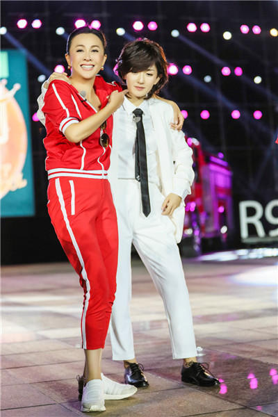 刘嘉玲见谢娜走近,直接起身,一把抱住谢娜献上热吻,谢娜则热辣回应:“刚刚我的女粉丝给我献吻了,今晚你住哪里呀?”沉醉在模仿秀中的四人迟迟不肯下台,最后队长袁弘无奈直接把大家往下“赶”。