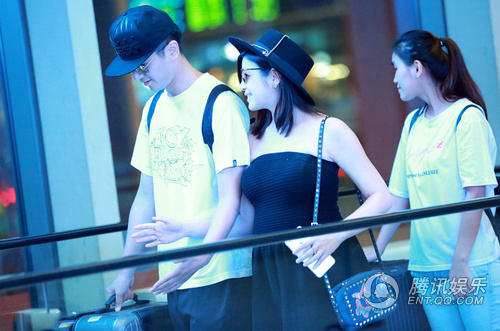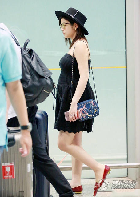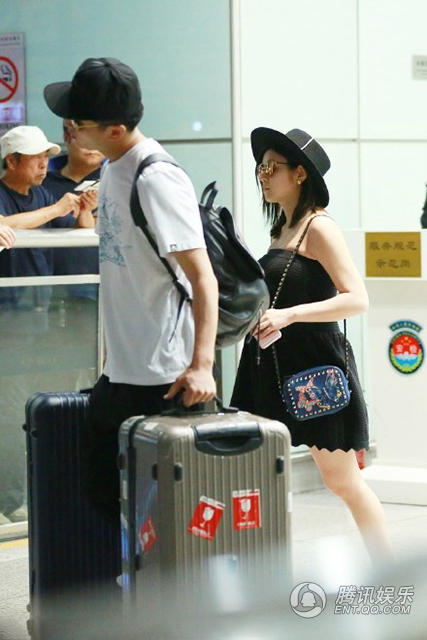 陈妍希大肚现身机场 与陈晓十指相扣秀恩爱