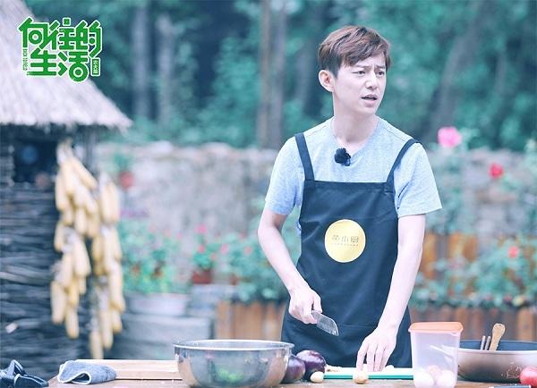 何炅很爱这段与朋友共处的时光,他还有把“蘑菇屋”买下来的想法,“可以让更多的朋友过来聚聚,给忙碌生活一个缓冲。”图为:何炅做饭。
