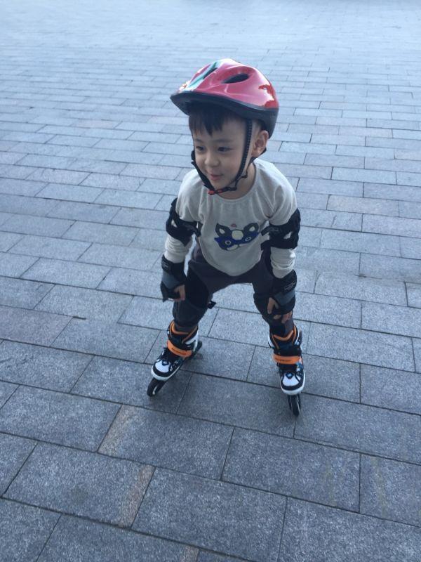 这么小就会轮滑啦。