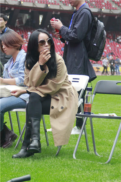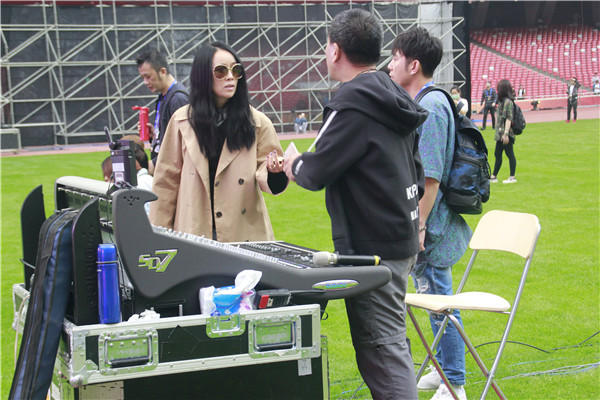 那英在彩排现场。