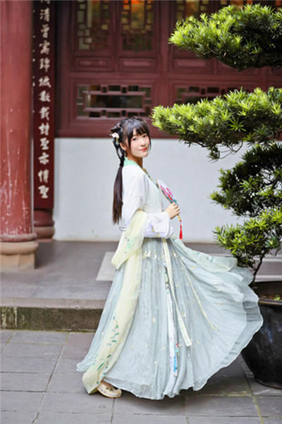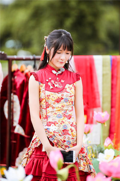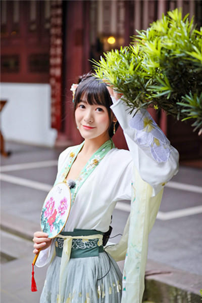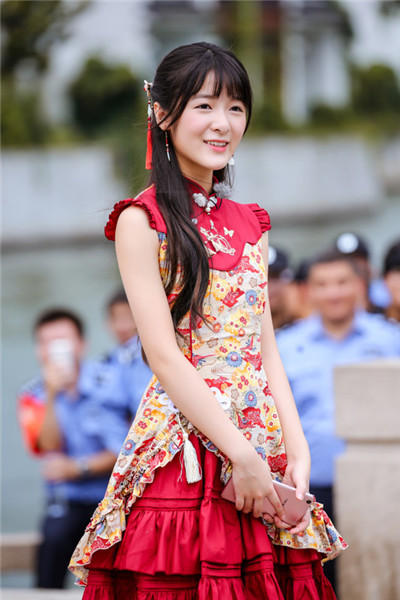 结合了当地江南水乡的特色,徐娇的搭配既不失娇俏可爱,又充满了古典气质。