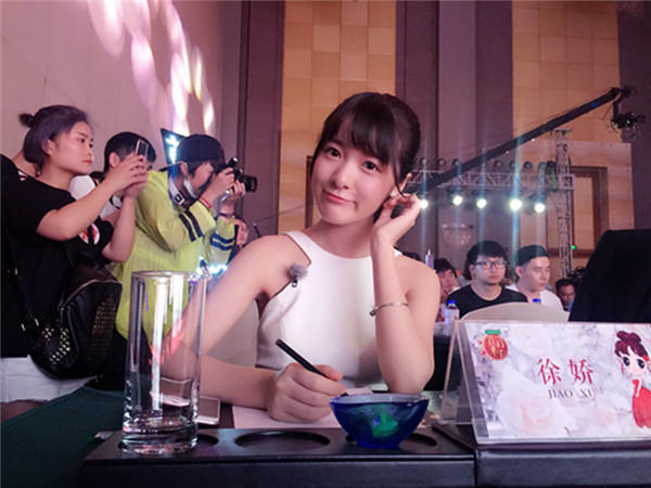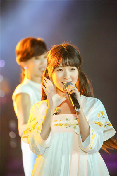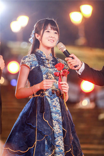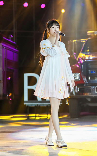 徐娇在成都站时,以一身淡雅的汉服裙,搭配两个发髻,犹如邻家小妹般甜美可人。