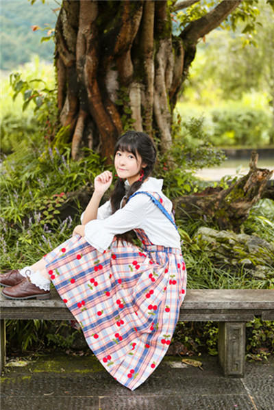 樱桃刺绣和背带裙的巧妙搭配,徐娇显得十分童趣可爱。