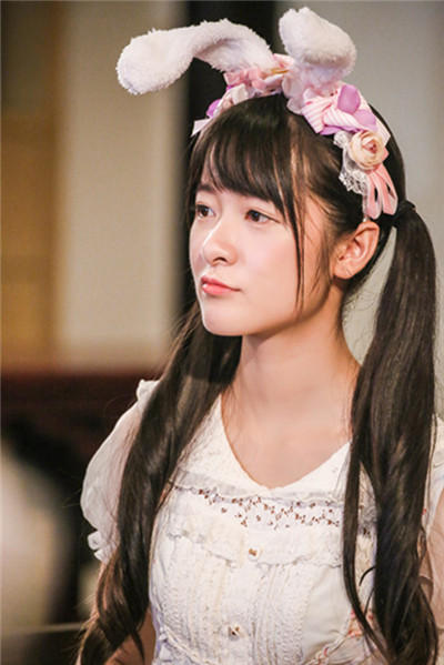 搭配上可爱的兔耳朵发卡,徐娇显得格外俏皮可人。