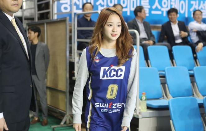 当地时间2016年10月23日,韩国全州,16/17赛季韩国职业篮球联赛,韩国的艺术体操女神孙妍为比赛开球成全场焦点。