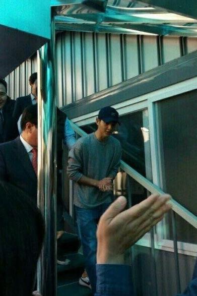 三位主演和外柔内刚制作公司的姜惠贞代表一起与春川市长崔东勇进行了愉快的交谈,一进门,几位主演就收到了市厅工作人员递上的鲜花,宋仲基一进门立即脱下帽子和市长握手,一入座默默调手机静音。