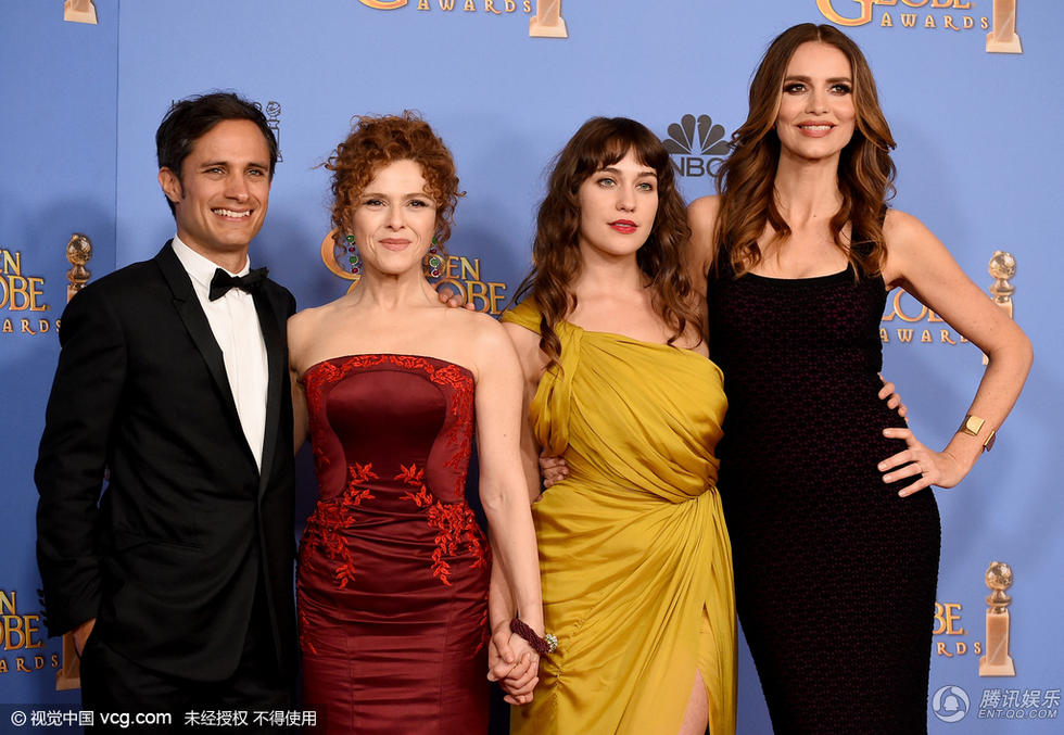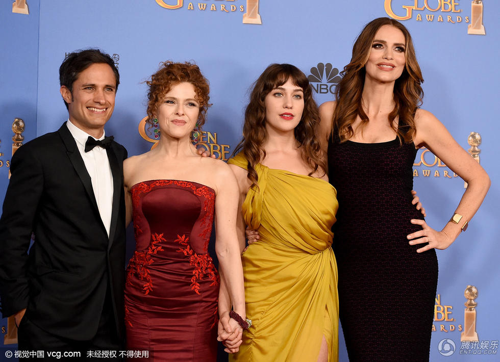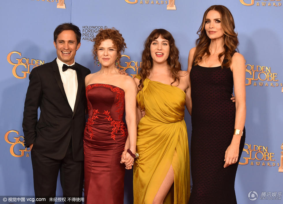 视觉中国讯 2016年1月11日,贝弗利山,当地时间1月10日,第73届美国电影电视金球奖颁奖典礼( 73rd Annual Golden Globe Awards)。音乐/喜剧类最佳电视剧:《丛林中的莫扎特》(Mozart in the Jungle)伯娜黛特·皮特丝(Bernadette Peters)等演员亮相后台。