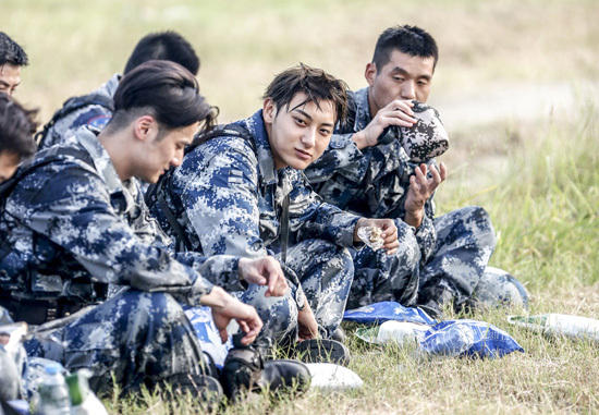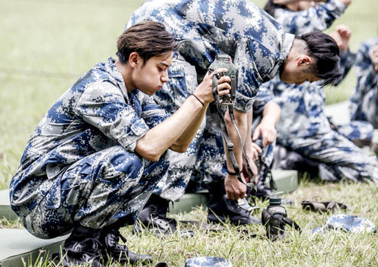 不仅如此,当黄子韬看到女兵端枪滚翻,每个人都翻得七零八落,连帽子都歪时,一旁的他居然默默地说了句“真的好可爱”,博得不少女网友好感,纷纷表示“总是带着欣赏眼光的他,真的苏死人了”。更有在高强度的体能测试环节中,孙杨因时差有些体力不支,黄子韬也勇敢的站出来发声称“我们平时没有这么大的训练量,第一天这样有点过了”,明知这番话有可能再次被罚,却也不见黄子韬有任何犹豫。况且,当孙杨下场休息时,他仍旧坚持做测试,且在俯卧撑测试中,拿下第一的成绩。整期节目黄子韬看似嬉皮笑脸、搞笑添气氛,但正经训练时却毫不含糊,毕竟蒋劲夫也爆料称黄子韬是兵王。期待黄子韬从率性十足的音乐少年到英气挺拔的天子骄子的热血蜕变。图为:黄子韬射击。