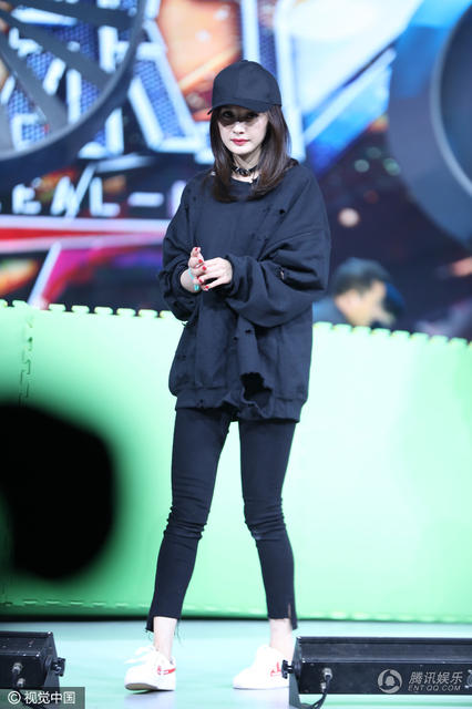 杨幂现场全黑搭配。