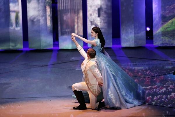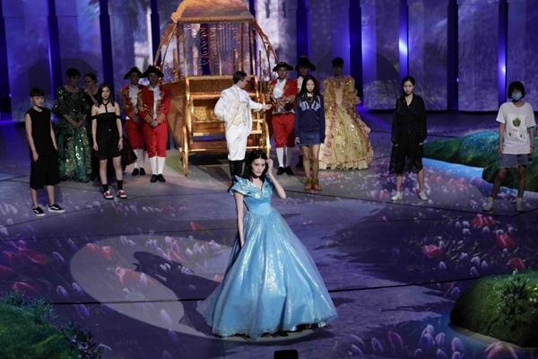 本周女神何穗打造了一个唯美的童话空间:在舞台打造的森林城堡的童话世界,何穗穿着迪士尼公主经典的蓝色低胸大摆裙登场,头戴皇冠与王子优雅共舞,轻盈舞姿美不胜收,而后在众人的簇拥下,女神做南瓜车再次出场,王冠戴头披肩加身也让维密天使多了一丝女王的气息。如此华美的时尚秀也让现场尖叫不断。然而与大多数少女不同,何穗表示“我从小就觉得太完美的童话故事,像《灰姑娘》也好,《白雪公主》也好,总觉得有那么一点点的不现实。就是会希望自己变公主是靠自己而不是因为把期待放在一个王子身上,等待找到他,我就是很怕失望的一个人,所以我就会比较理智。”