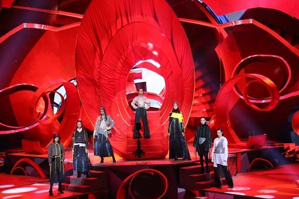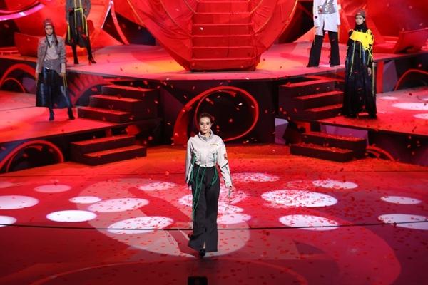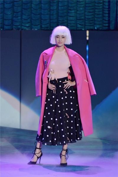 本周吴昕联手设计师搭档Ground Zero在作品中融入动漫中“进化”的概念,捆绑下垂的线绳也让服装作品未来感十足,而绑带的漆皮装饰是隐藏的口袋,增强了作品的实用性。搭配上太空银的上衣,女神仿佛从游戏世界穿越而来。女神的时尚大秀大玩性感诱惑,女神吴昕更是上演天外飞仙,霸气从天飞落空降舞台。连主持人也表达了对女神的喜爱“我必须要讲今天的吴昕,太霸气了,厉害!”