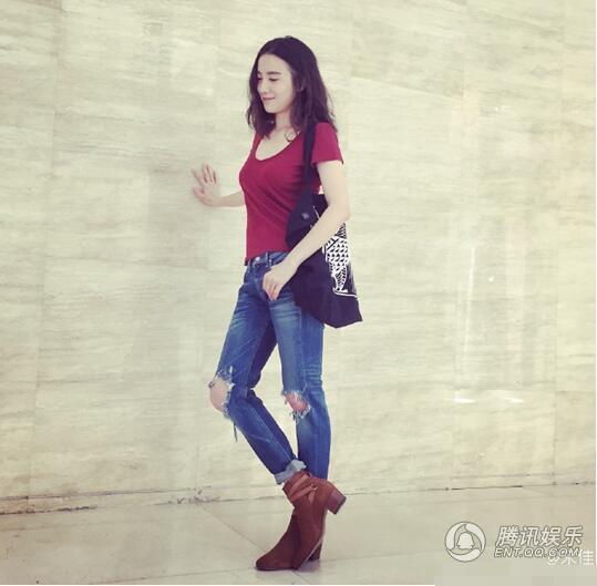 30日,宋佳在微博晒出自拍美照,还留言称:“衣服鞋子反复搭配,小布包又时髦还很环保。可持续消费才是真时尚。”照片中,她穿着酒红色T恤搭配破洞牛仔裤、小布包,时尚又不失美艳。