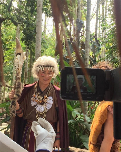 陈浩民野人装扮似酋长。