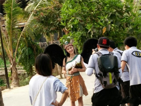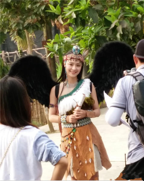 李莎旻子穿着野人的衣服,模样俏皮。