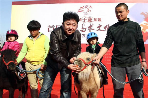 2013年3月27日下午,天精地华宠乐园园长于谦在他的个人“动物园”里迎来了众多中国马术节的专家和从业者。在这里,他又多了一个新身份——首届北京马术文化节“儿童马术推广大使”。活动现场,一匹刚刚出生15天的英国设特兰矮马也前来“助兴”,尚没有名字的小家伙被在场记者命名为“谦谦”。由于幼马还没有断奶,当有记者邀请于谦喂小马吃东西时,他说道:“它还不能吃东西,谦谦还没有断奶。”此言一出,惹得在场嘉宾和媒体记者集体笑场。(资料图)
