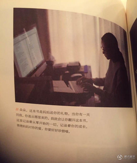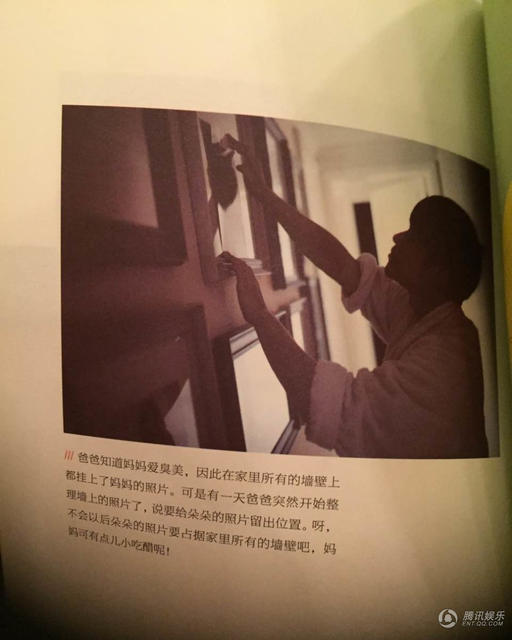 小两口为了迎接孩子的到来,准备了很多东西。佟丽娅在书中写道:“朵朵,自从知道你要来,爸爸妈妈为你准备了好多东西,小玩具由妈妈负责,大家伙就由爸爸来啦。”