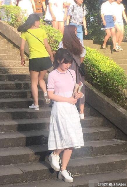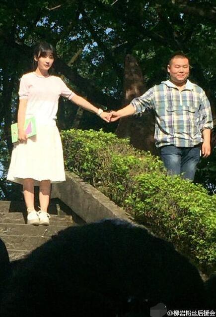 柳岩扮学生妹现身校园 与岳云鹏手牵手拍戏